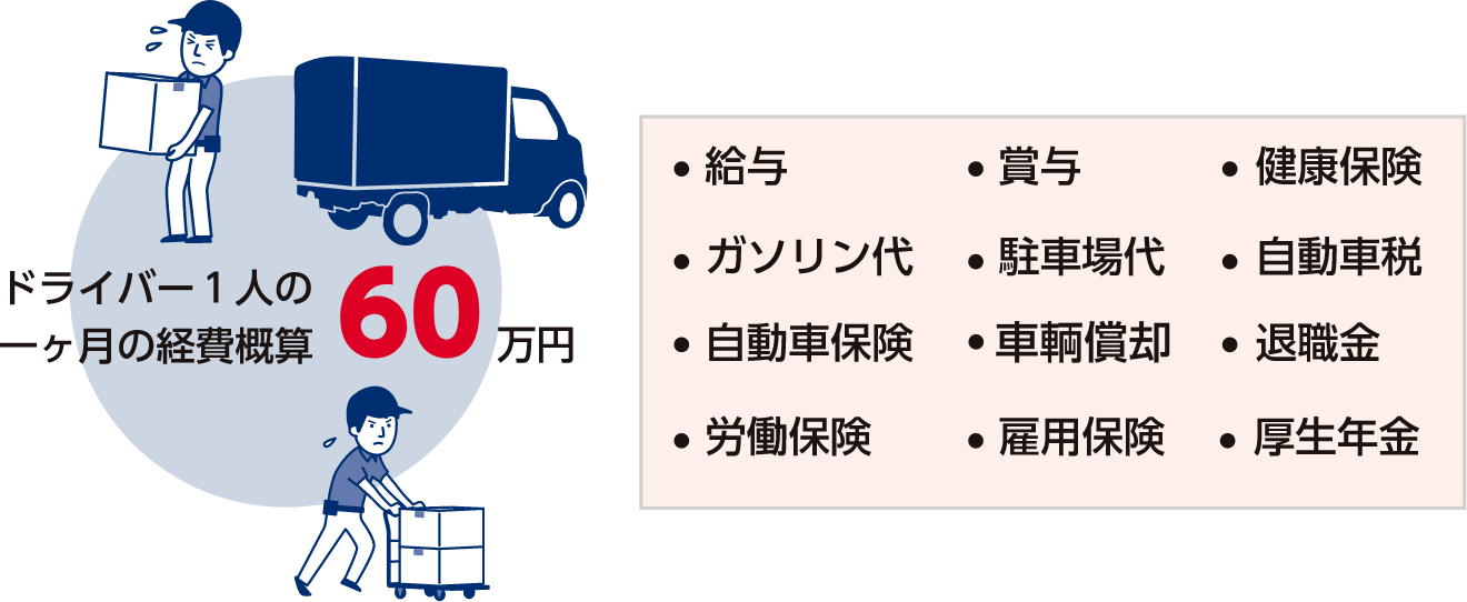 業務委託であるため、人件費(社会保険、賞与、退職金)、車輌維持費などの費用が削減されます。 ドライバーはすべてプロのセールスドライバーです。 営業時間・集金・ピッキング・事務等なんでもお申し付け下さい。 すべての車輌は陸運局の営業許可を取得済です。